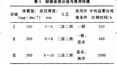 3.5鋅鉻涂層分級與使用環(huán)境